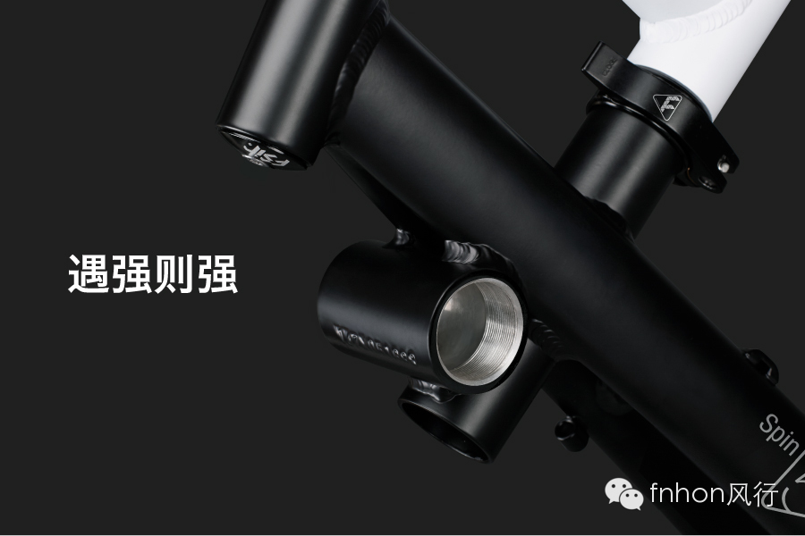 要减少折叠自行车卸力的缺点,就需要增强车架每个部位的强度,所以FSIR所有的车型除了具有更强的完整主梁之外,还采用独有的三角形五通支撑技术,将两根平叉通过五通上侧,并与五通焊接,使五通刚性增强约30%。