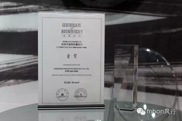 FSIR旋转自行车荣获CHINA CYCLE 2015创新产品金奖,FSIR展位荣获第25届中国国际自行车展览会最佳展位优秀奖